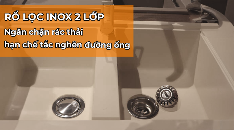 Sử dụng rổ lọc inox đi kèm để ngăn chặn mảnh vụn và chất thải rơi vào hệ thống xả. Điều này giúp bảo vệ ống thoát nước và tránh tắc