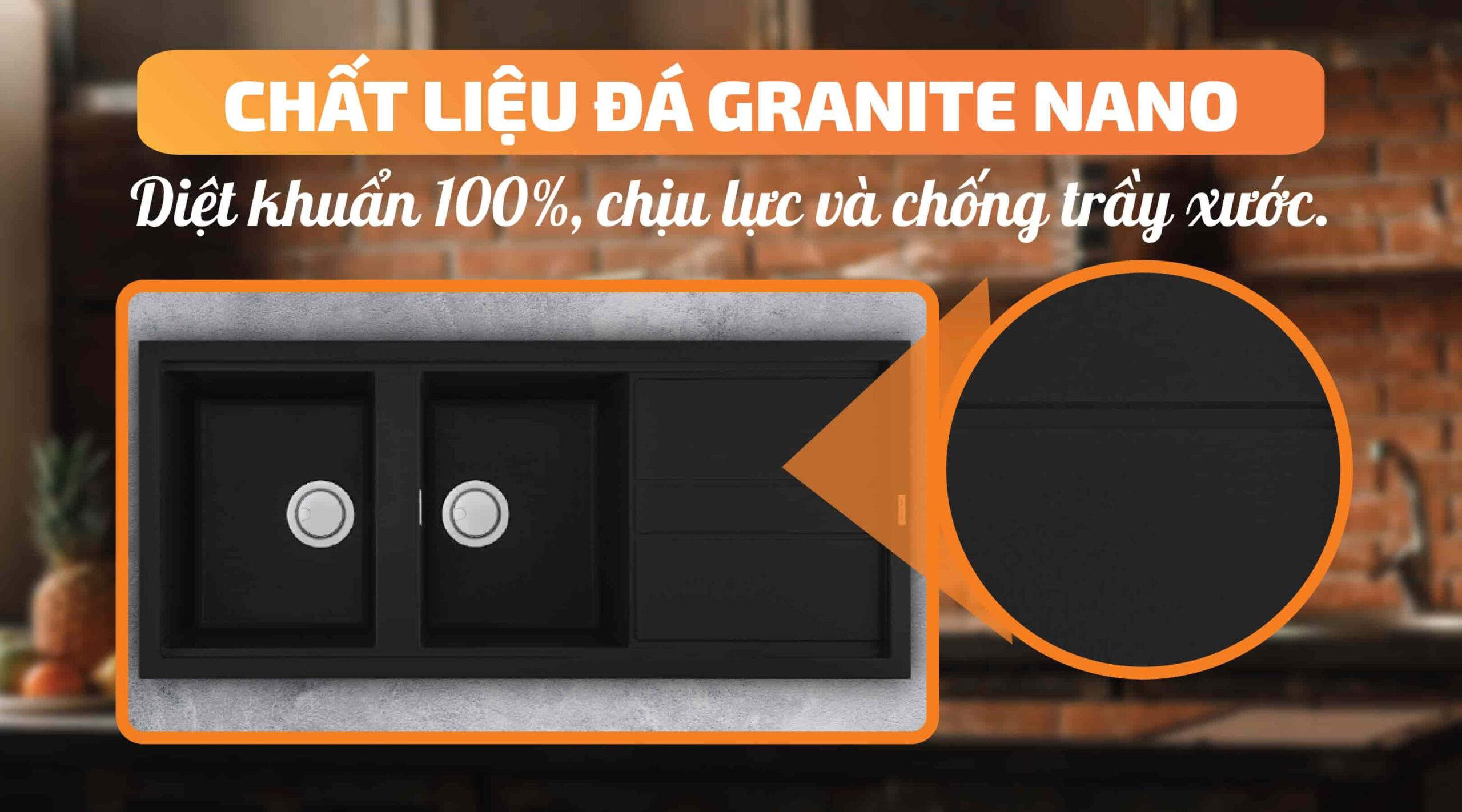 Với thiết kế cao cấp và sự kết hợp hoàn hảo giữa chất liệu đá Granite tự nhiên và công nghệ phủ Nano Bạc, sản phẩm này không chỉ đảm bảo mặt chuyên môn và kinh nghiệm mà còn đem lại độ tin cậy và thẩm quyền trong lĩnh vực chậu rửa chén.