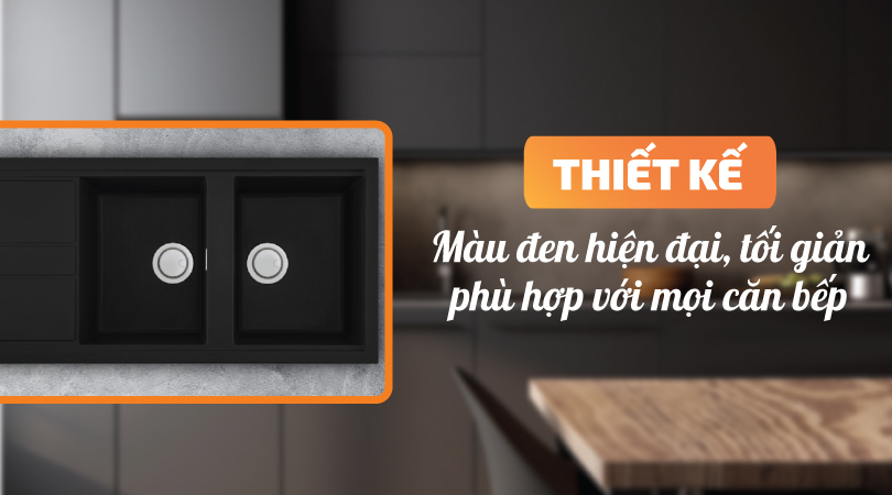 Chậu rửa chén cao cấp được thiết kế với gam màu đen huyền bí giúp tôn lên phong cách hiện đại, tối giản cho căn bếp. Màu đen trung tính giúp cho chậu phù hợp với bất kì không gian bếp nào, từ hiện đại sang trọng đến cố điển.