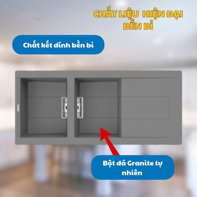 Chậu rửa chén Malloca SMART K-500 được làm từ bột đá Granite tự nhiên kết hợp với chất kết dính cao cấp, mang đến vẻ đẹp sang trọng và độ bền vượt trội. Đá Granite nổi tiếng với khả năng chịu lực, chống va đập mạnh, giúp sản phẩm duy trì độ nguyên vẹn dù sử dụng trong thời gian dài.