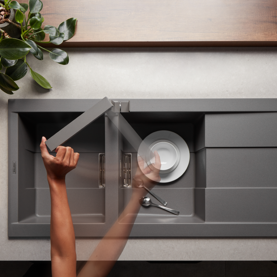 Chậu rửa chén Malloca SMART K-500 được trang bị hệ thống xả compact nhỏ gọn, giúp tối ưu hóa không gian sử dụng. Thiết kế này không chỉ giúp chậu rửa trở nên gọn gàng hơn mà còn tạo điều kiện thuận lợi cho việc lắp đặt các thiết bị khác bên dưới chậu, mang đến sự tiện lợi tối đa cho người dùng.