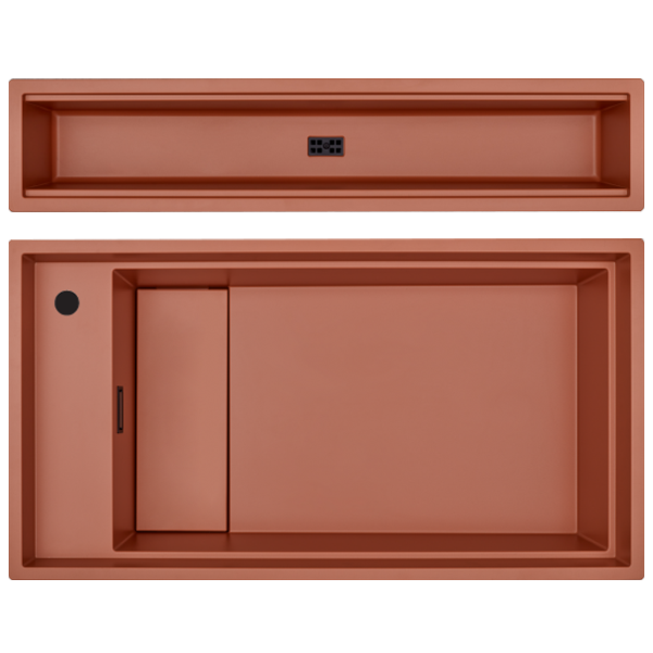 Chậu rửa chén đá Malloca được chia làm 2 ngăn: ngăn lớn kích thước W860 x D460 x H238mm, ngăn nhỏ kích thước W860 x D180 x H168mm. Có thể thấy ngăn bên dưới được thiết kế rất rộng, phù hợp rửa nhiều chén đĩa xoong nồi cùng lúc, ngoài ra còn giúp bạn có thể tận dụng không gian để làm ráo đĩa và thực phẩm sau khi rửa rất tiện lợi.