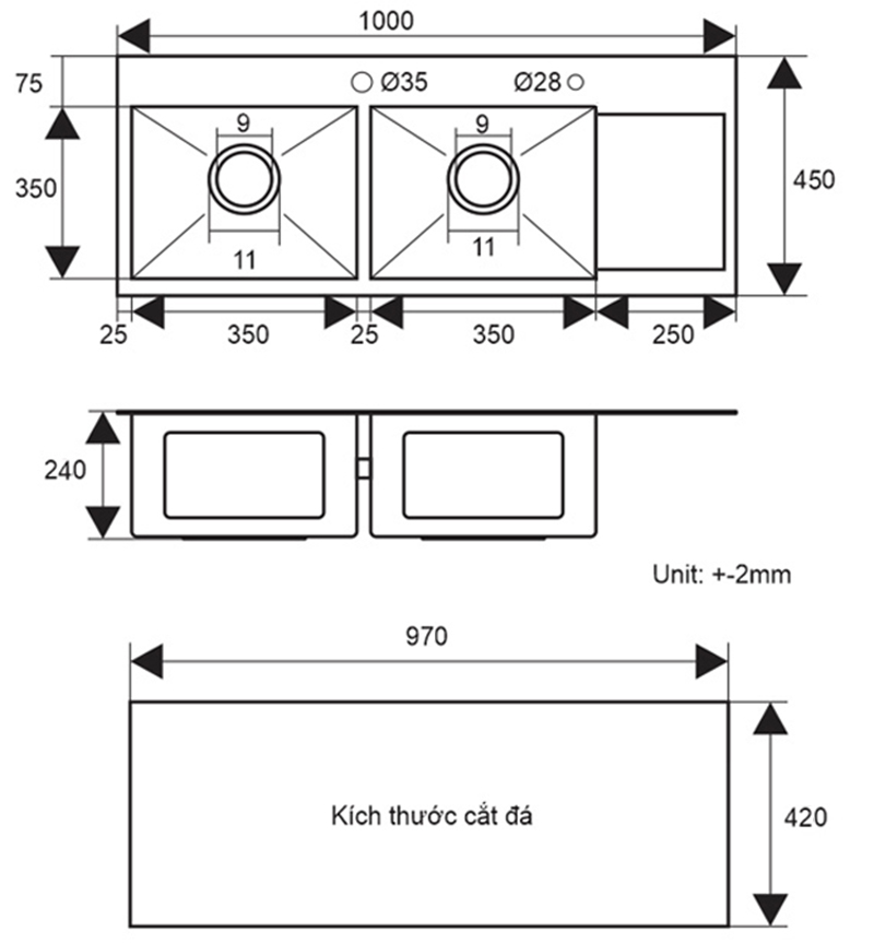 - Vệ sinh dễ dàng: Với góc lượn R15 mềm mại, việc vệ sinh lòng chậu trở nên dễ dàng hơn bao giờ hết. Các góc cạnh được bo tròn giúp loại bỏ các vết bẩn cứng đầu, đảm bảo chậu luôn sáng bóng.