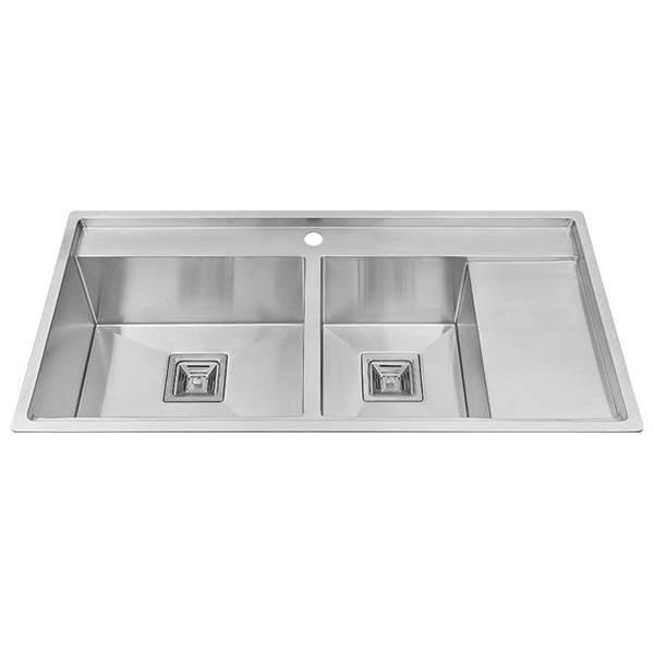 Sản phẩm được thiết kế với hai bồn rửa chính, một bồn lớn và một bồn nhỏ. Điều này mang đến sự linh hoạt cho việc rửa các loại đồ ăn và dụng cụ khác nhau. Phần đáy chậu được thiết kế hình kim tự tháp giúp nước không bị đọng lại, đem lại sự khô ráo và sạch sẽ cho không gian bếp của bạn.