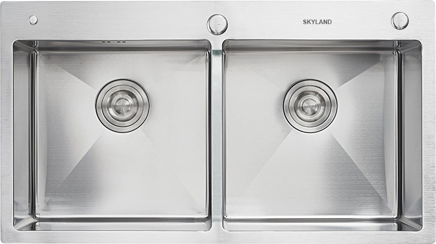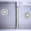 Phần mặt chậu được thiết kế 2 lỗ để lắp vòi, 1 lỗ lắp vòi rửa bát thông thường, lỗ còn lại có thể sử dụng để lắp thêm vòi lọc nước của máy lọc nước RO.