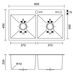 Chậu EU-8245C được thiết kế với kiểu dáng 2 hố bằng nhau rộng rãi, vuông vắn với kích thước dài, rộng, sâu lần lượt là 820x450x230mm nên bạn có thể thoải mái lắp đặt và sử dụng trong nhiều diện tích và không gian khác nhau.