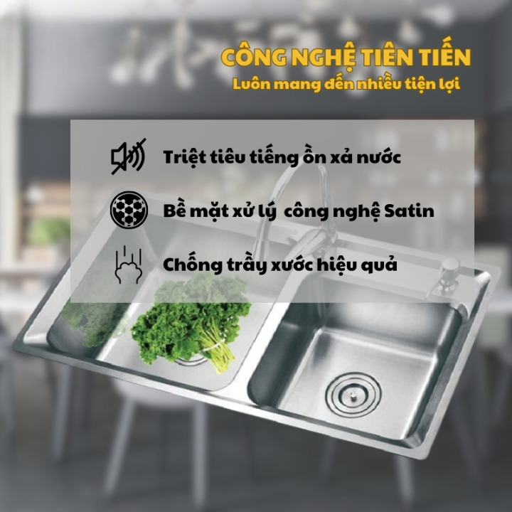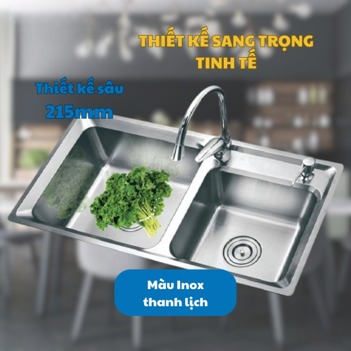 Chậu có độ sâu lòng chậu là 210mm, vì thế bạn không phải cúi quá sâu khi rửa bát và cũng sẽ hạn chế được hiện tượng nước bắn tung tóe ra khu vực xung quanh bàn bếp.