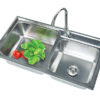 Phần mặt chậu được thiết kế 2 lỗ để lắp vòi, 1 lỗ lắp vòi rửa bát thông thường, lỗ còn lại có thể sử dụng để lắp thêm vòi lọc nước của máy lọc nước RO.