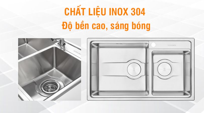 Chậu rửa chén Malloca MS 5082W được sản xuất từ chất liệu inox 304 cao cấp, đảm bảo độ bền vượt trội, khả năng chống ăn mòn, gỉ sét và chịu nhiệt tốt. Với chất liệu inox 304, khả năng chống gỉ sắt cao khi tiếp xúc với nước được tối ưu hóa.