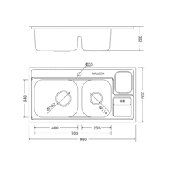 Chậu rửa chén Malloca MS 8809 có chiều ngang là 98cm, chiều dọc 50cm với 2 hộc rửa rộng rãi đi kèm nhiều phụ kiện tiện lợi.