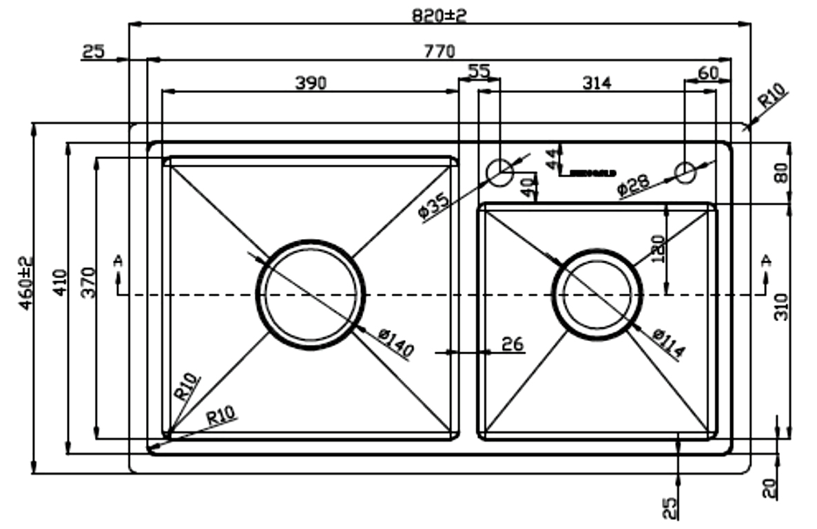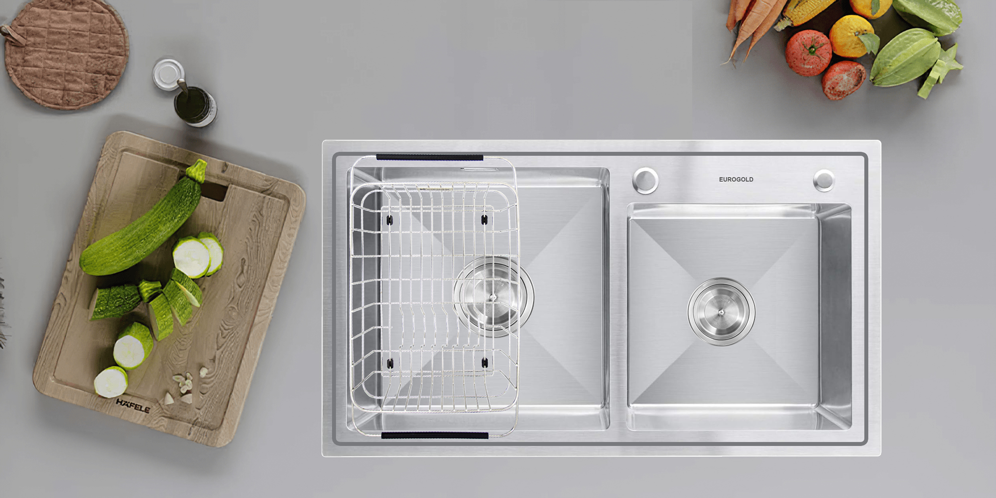 - Thiết kế chậu 2 hố lệch cho phép chọn hố chậu theo nhu cầu sử dụng