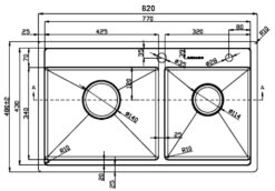 - Có 2 lỗ vòi (vòi rửa, vòi nước lọc hoặc bình đựng nước rửa) chờ lắp đặt
