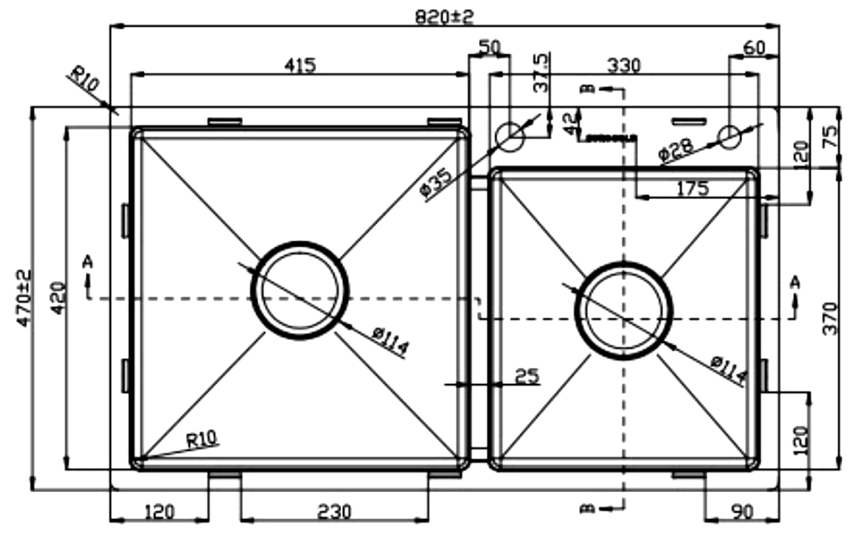 - Vệ sinh lòng chậu dễ dàng với góc lượn R10