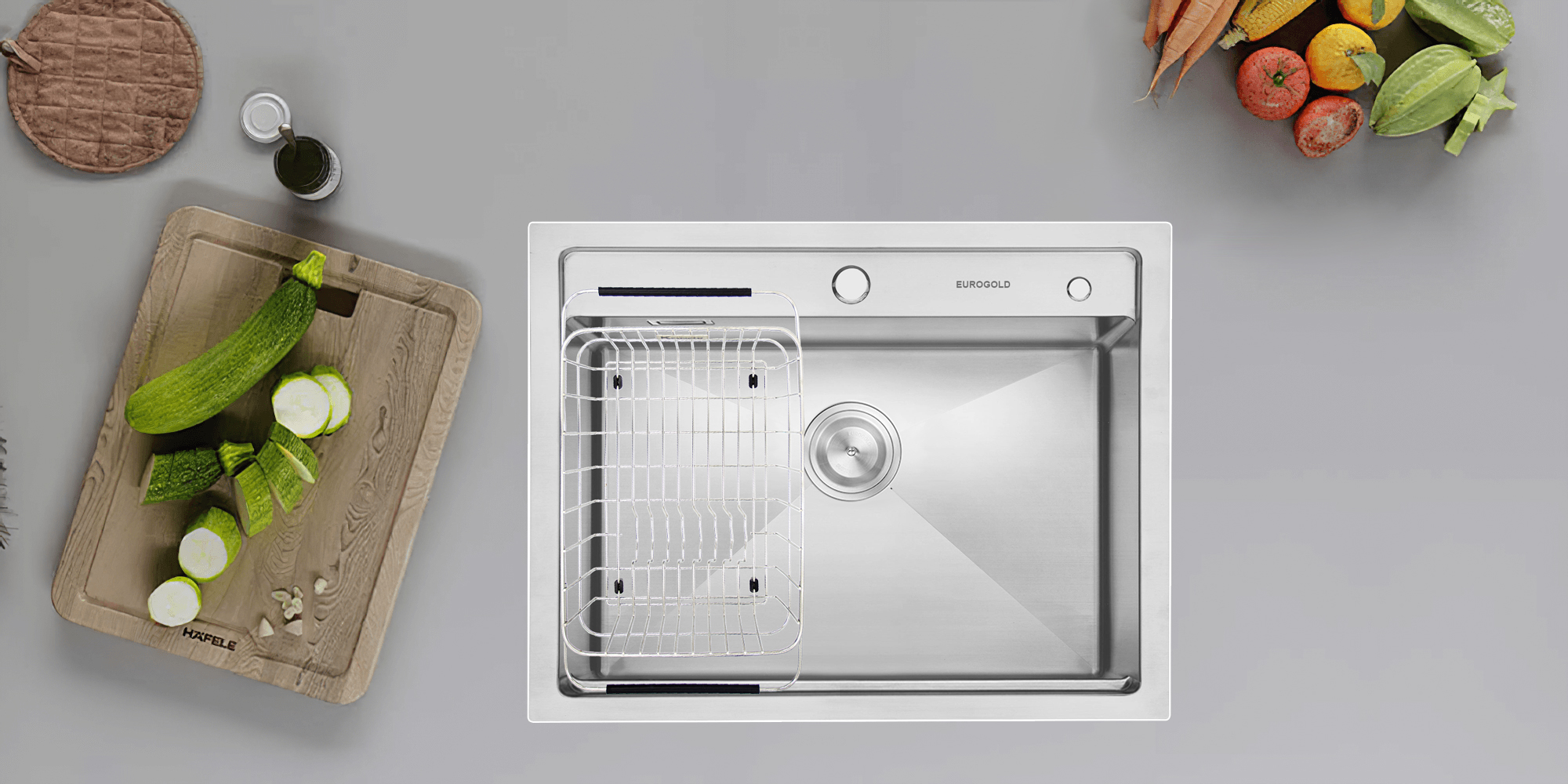 Chậu rửa Eurogold EUS55848 dòng sản phẩm dành cho bàn bếp có diện tích tương đối hạn chế những vẫn yêu thích phong cách chậu hạ bậc. Chậu rửa Eurogold EUS55848 thiết kế hố đơn, được tối ưu công năng nhờ thiết kế hạ bậc, tích hợp phụ kiện đi kèm mang tới trải nghiệm tuyệt vời trong thao tác làm bếp.