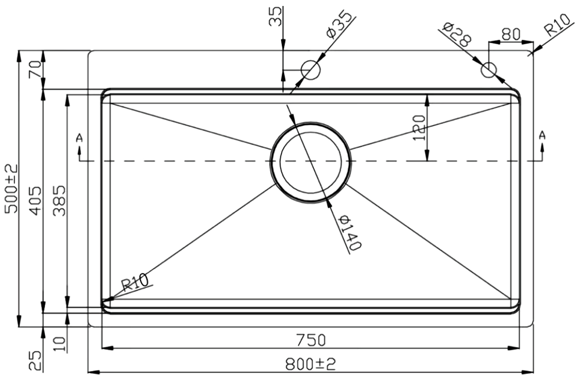 - Vệ sinh lòng chậu dễ dàng với góc lượn R10 mm