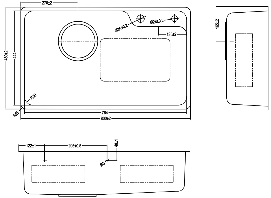 Độ sâu chậu rửa bát H210 (mm), ngăn chặn việc nước bắn ra khỏi chậu, giữ cho không gian xung quanh sạch sẽ và khô ráo. Chậu bếp sâu lòng cung cấp không gian đủ cho các công việc lớn hơn.