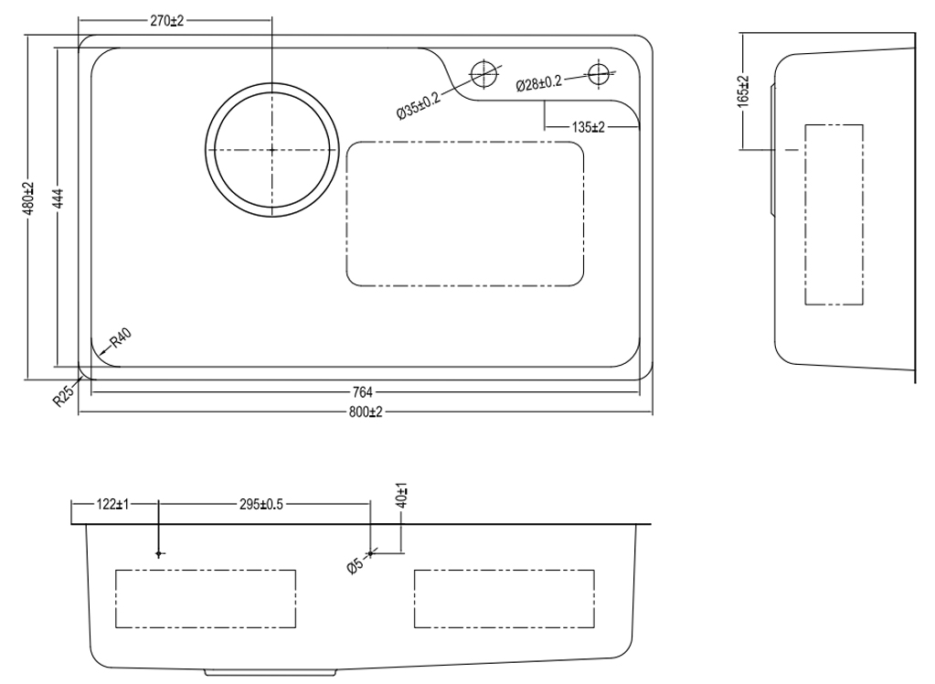 Độ sâu chậu rửa bát H210 (mm), ngăn chặn việc nước bắn ra khỏi chậu, giữ cho không gian xung quanh sạch sẽ và khô ráo. Chậu bếp sâu lòng cung cấp không gian đủ cho các công việc lớn hơn.
