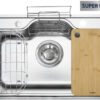 Giỏ đựng đồ inox 304 thiết kế phù hợp với kích thước và hình dạng của chậu, là một giải pháp thông minh để tận dụng không gian trong chậu và giữ cho đồ dùng như bàn chải, xà phòng và thớt gỗ được sắp xếp gọn gàng và tiện lợi.