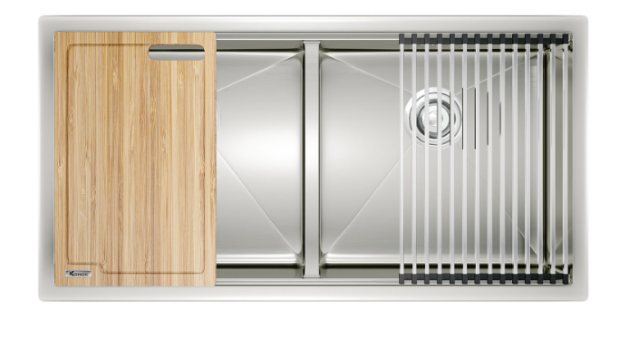 Model Chậu rửa bát Workstation Sink – Undermount Sink KN8046DUB được tối ưu công năng nhờ thiết kế hạ bậc, tích hợp phụ kiện đi kèm mang tới trải nghiệm tuyệt vời trong thao tác làm bếp.