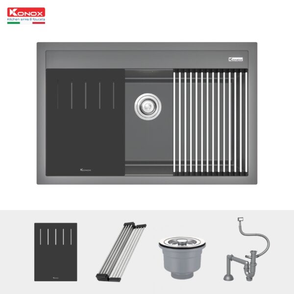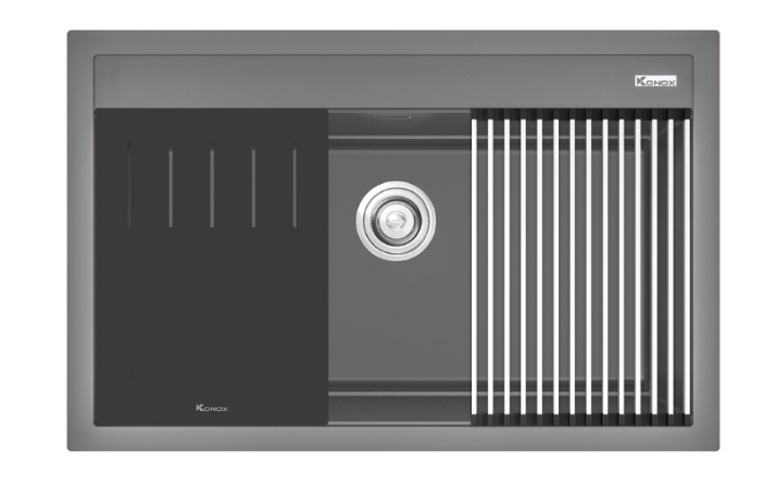 Chậu rửa bát đá Granite Sink Terra 790S Grey nằm trong bộ sưu tập chậu vòi đá cao cấp của Konox – Kiệt tác Ý trong lòng bếp Việt.