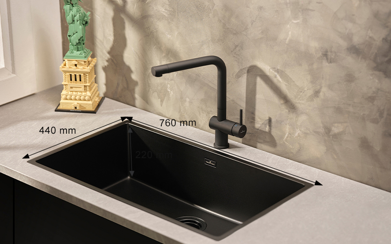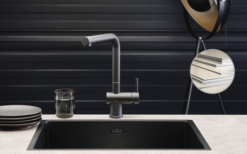 Bề mặt chậu rửa New York 72×40 R34996 được chế tác inox cao cấp làm nổi bật tông màu đen sang trọng R34996. Mang lại khả năng chống trơn trượt hiệu quả, giảm sự bám dính dầu mỡ lên bề mặt chậu. Ngoài ra, chất liệu inox mang đến sự an toàn cho sức khỏe con người.