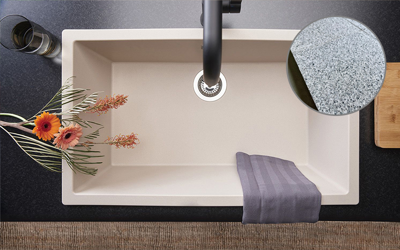 Bề mặt chậu rửa chén bát R30905 được chế tác từ đá Granite mịn màng giúp giảm sự bám dính dầu mỡ. Điều này giúp người dùng dễ dàng lau chùi và vệ sinh hơn.