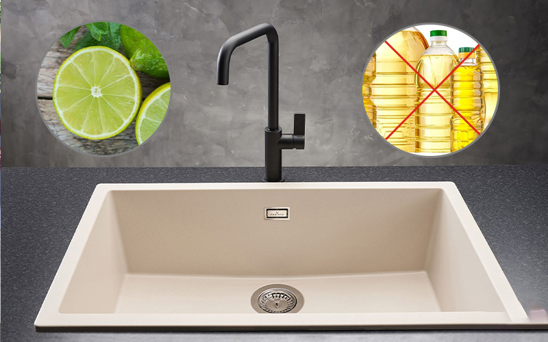 Bề mặt chậu được chế tác bằng đá mịn màng, ít bám dầu mỡ