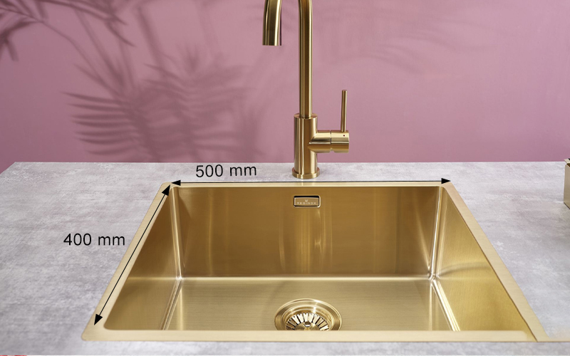 Bề mặt chậu rửa Miami 50×40 R30745 được chế tác inox sáng bóng làm nổi bật tông màu vàng của R30745. Điều này giúp chống trơn trượt hiệu quả, giảm sự bám dính dầu mỡ lên bề mặt chậu. Ngoài ra, chất liệu inox mang đến sự an toàn cho sức khỏe con người.