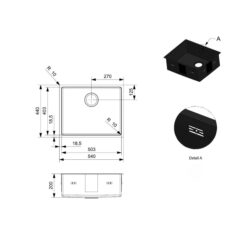 Kích thước của chậu rửa chén bát New York 50×40 R34262 (CxRxS): 200 x 540 x 440 (mm).