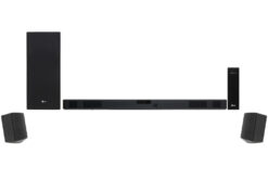 Dàn âm thanh LG 4.1 SL5R 520W gây ấn tượng mạnh với màu đen phong cách, thanh loa cùng loa trầm vẻ ngoài hoàn thiện, không chi tiết thừa mang đến sự tuyệt mỹ, hoàn hảo cho không gian lắp đặt và sử dụng.