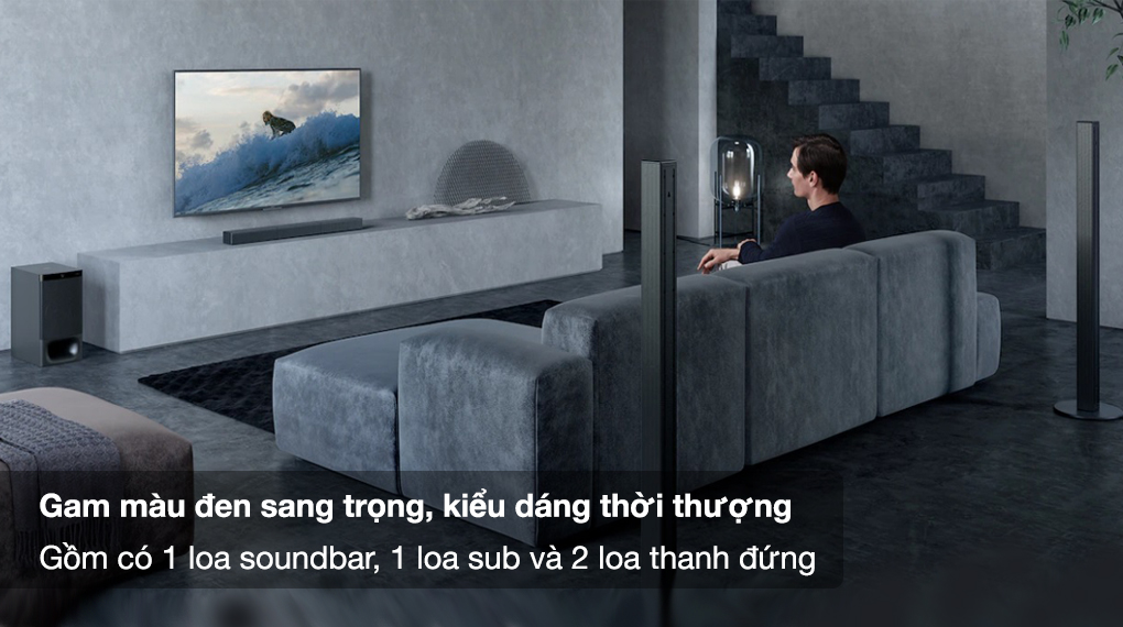 – Dàn âm thanh Sony này được thiết kế hệ thống âm thanh 5.1 kênh, gồm có 1 loa soundbar (thanh ngang), 1 loa sub và 2 loa sau, cho chất lượng âm thanh mạnh mẽ như trong rạp chiếu phim.
