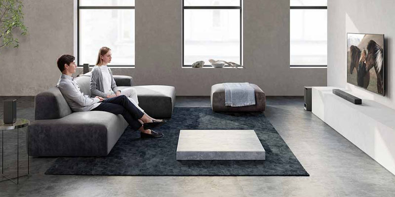 Trải nghiệm âm thanh như tại rạp chiếu phim ngay ở nhà nhờ hệ thống âm thanh 5.1 kênh với các loa sau nhỏ gọn có tổng công suất đầu ra 1000 W. Hãy đắm chìm trong khoảnh khắc lay động của âm thanh vòm chân thực.