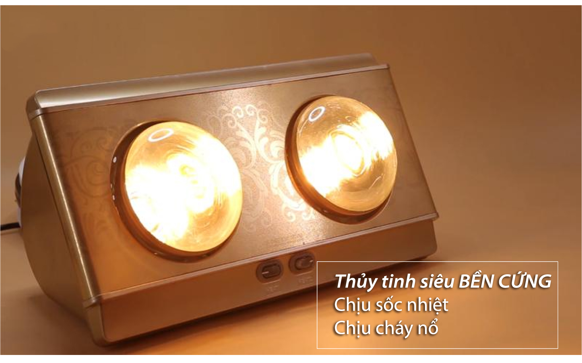 Mức độ ấm áp mà sản phẩm này tạo ra được nâng cao hơn nhờ lớp tráng vàng trên bề mặt vỏ đèn, tạo nét đẹp tinh tế, khiến người tắm không bị lóa mắt, người sử dụng có thể nhìn trực tiếp vào ánh đèn mà không có cảm giác lóa mắt bởi tích hợp công nghệ hiện đại, lúc này, bạn cũng sẽ yên tâm hơn khi nhà bạn có trẻ nhỏ.