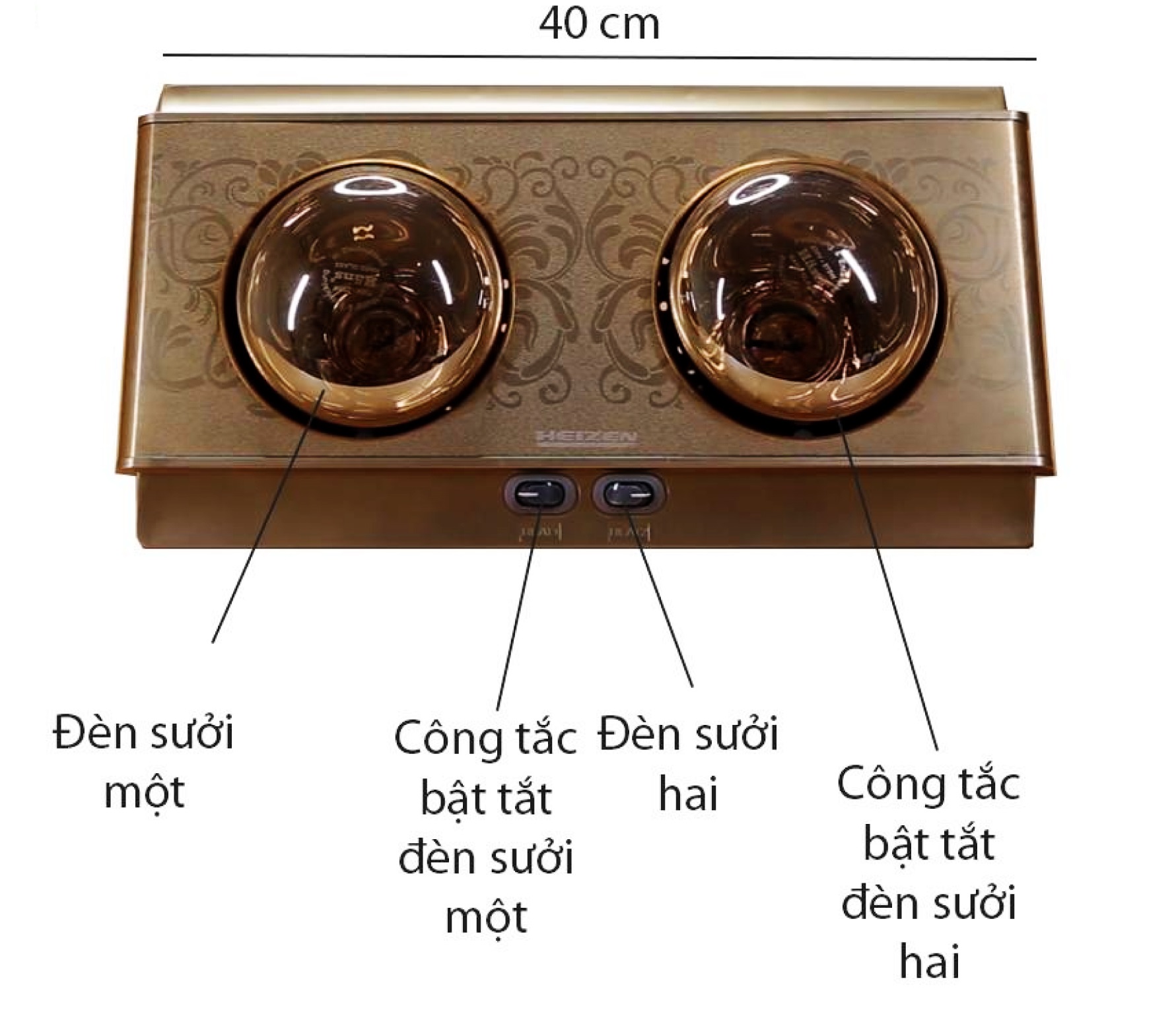 Đèn sưởi cho nhà tắm Heizen HE 2B hai bóng giúp người dùng có thể thoải mái hít thở không khí như bình thường,không phải lo oxy bị đốt cháy bởi được thiết kế công nghệ tối tân nhất hiện nay, đây là một điểm vượt bậc hơn những loại đèn sưởi thông thường khác.