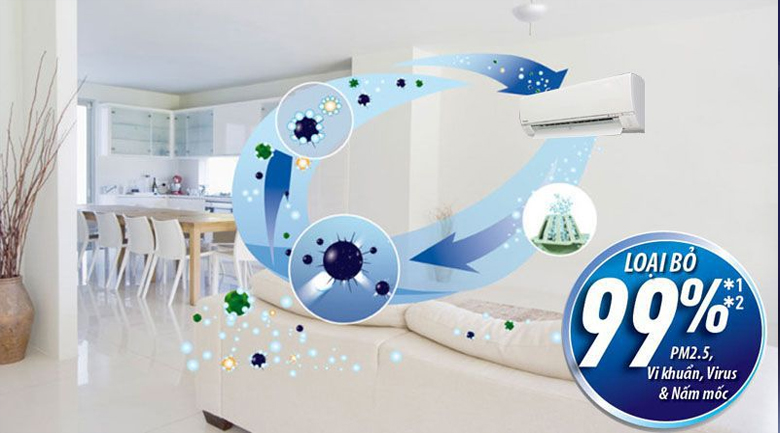 Chiếc điều hòa Panasonic này đượng trang bị công nghệ thanh lọc không khí Nanoe-G nhờ tạo ra hàng tỷ phân tử siêu nhỏ giúp loại bỏ bụi bẩn, phân hủy các vi khuẩn và vi sinh vật, mang lại luồng không khí trong lành và mát lạnh cho gia đình bạn.