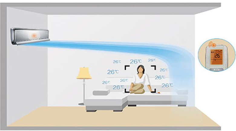 Theo nghiên cứa của Gree, người dùng thường có thói quen đặt remote bên cạnh mình khi sử dụng điều hòa. Chính vì vậy Gree trang bị một cảm biến nhiệt độ bên trong remote, giúp cảm biến chính xác được nhiệt độ xung quanh. Công nghệ này giúp điều chỉnh chính xác nhiệt độ cài đặt tại nơi người dùng đang ở.