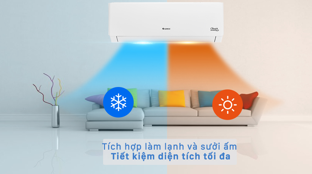 Tích hợp 2 tính năng làm lạnh và sưởi ấm giúp tiết kiệm chi phí và diện tích đáng kể.