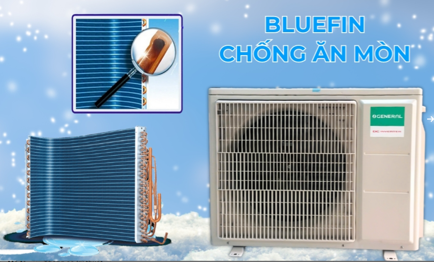 Dàn tản nhiệt của dàn nóng được phủ một lớp sơn màu xanh (Bluefin) giúp tăng cường độ bền. Những lớp phủ đặc biệt này có tác dụng bảo vệ chống ăn mòn từ không khí, nước và các chất ăn mòn khác. Nhờ đó, tuổi thọ của sản phẩm cũng được tăng lên đáng kể.
