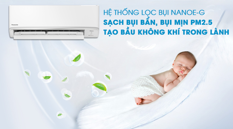 Nanoe-G giải phóng các ion âm xung quanh máy lạnh. Các ion này sẽ gắn kết với các hạt bụi theo dòng không khí vào trong ống nạp khí của máy lạnh. Sau đó, các hạt bụi tích điện âm này bị màng lọc tích điện dương giữ lại và vô hiệu hóa tại màng lọc, giúp không khí sạch bụi bẩn, bụi mịn PM2.5, đảm bảo an toàn sức khoẻ cho gia đình bạn.