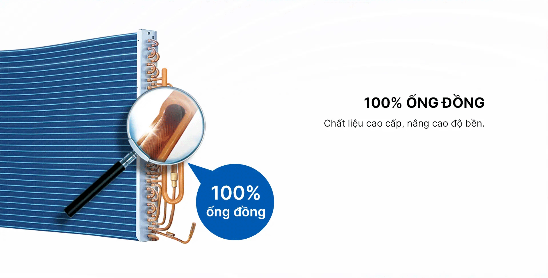 Dàn tản nhiệt máy lạnh Aqua R24PC được làm bằng 100% đồng nguyên chất cao cấp. giúp hoạt động bền bỉ lạnh sâu hơn.