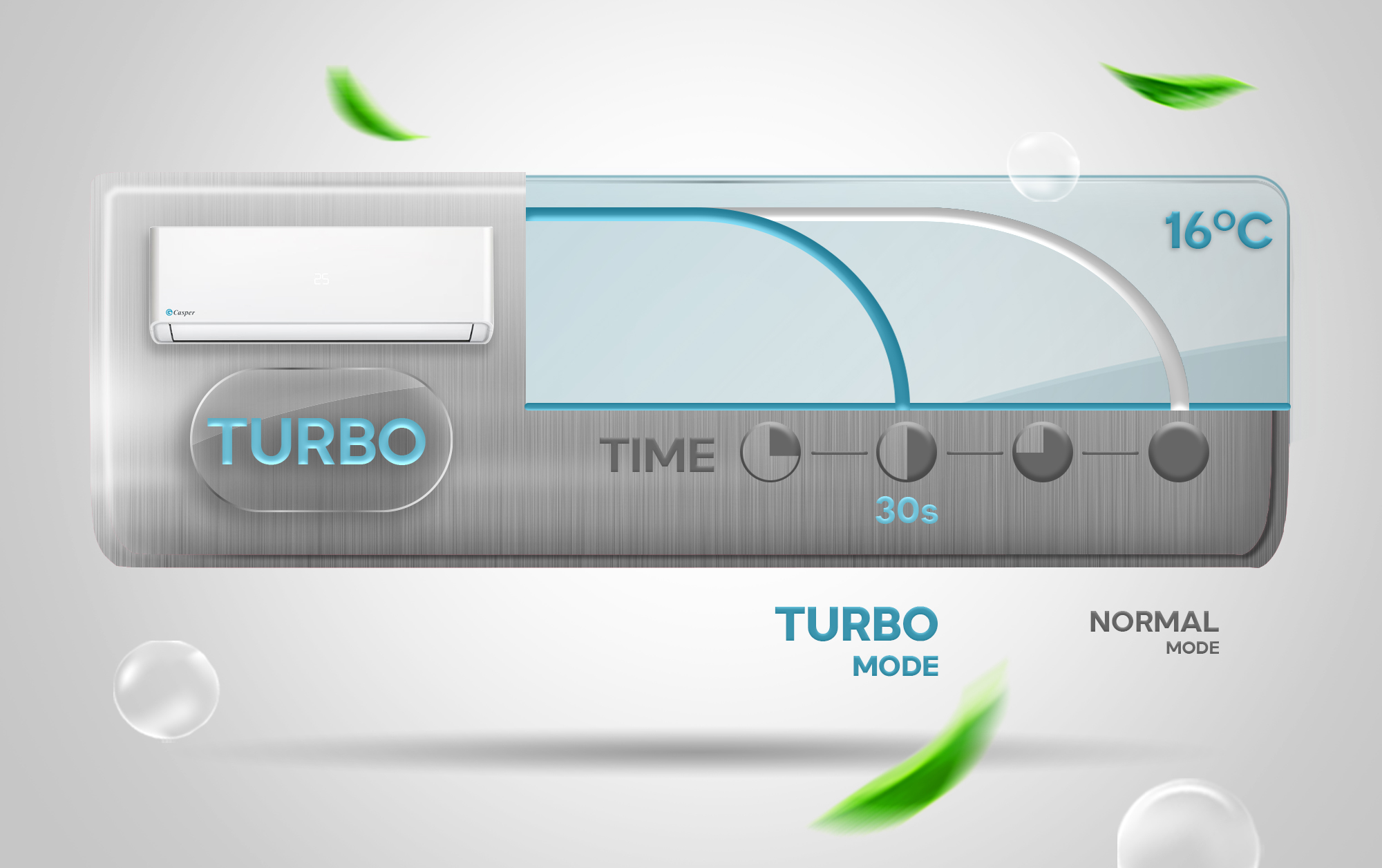 Điều hòa Casper 1 chiều tiêu chuẩn với công nghệ làm lạnh nhanh Turbo, giúp bạn tận hưởng không khí mát lạnh tức thì trong 30s ngay cả vào những ngày đặc biệt nắng nóng.