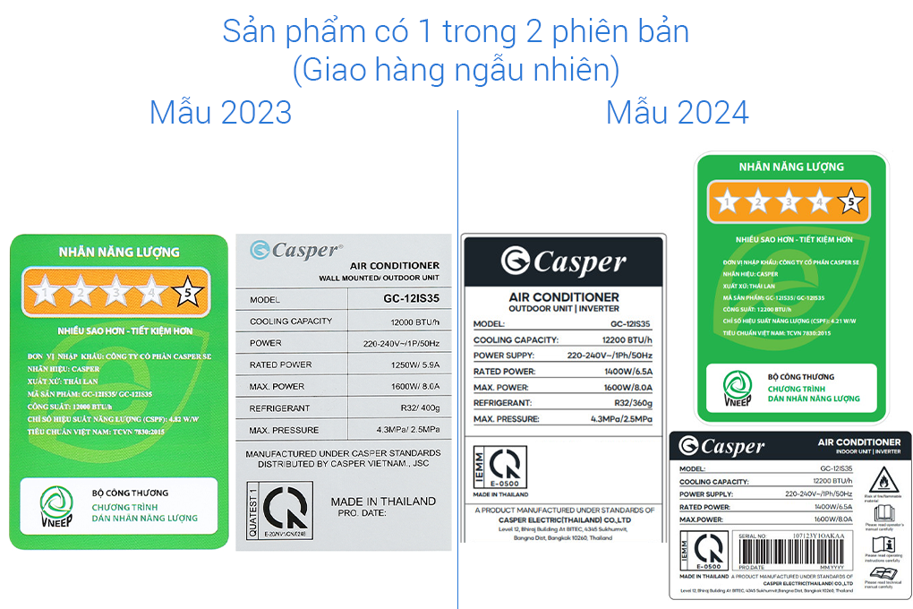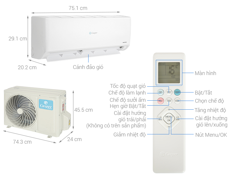 – Máy lạnh Casper có công suất làm lạnh 1.5 HP nên phù hợp với diện tích phòng từ 15-20 m².