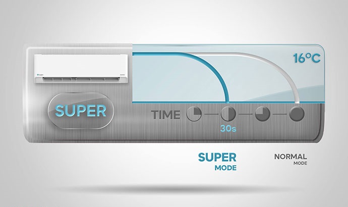Khi nhiệt độ môi trường xung quanh đạt tới nhiệt độ cài đặt, máy nén sẽ tự động giảm tần số hoạt động xuống mức thấp nhất, giúp giảm điện năng tiêu thụ xuống mức tối thiểu.