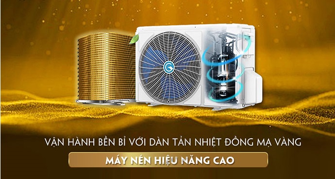 Điều hòa Casper 1 chiều inverter 12000 BTU TC-12IS36 được trang bị dàn tản nhiệt đồng mạ vàng. Lớp mạ vàng giúp tăng khả năng chịu đựng các tác nhân ăn mòn như: Nước muối, mưa, các chất ăn mòn khác…, đẩy lùi sự sinh sôi của vi khuẩn và làm tăng hiệu năng trao đổi nhiệt cũng như tuổi thọ của sản phẩm.