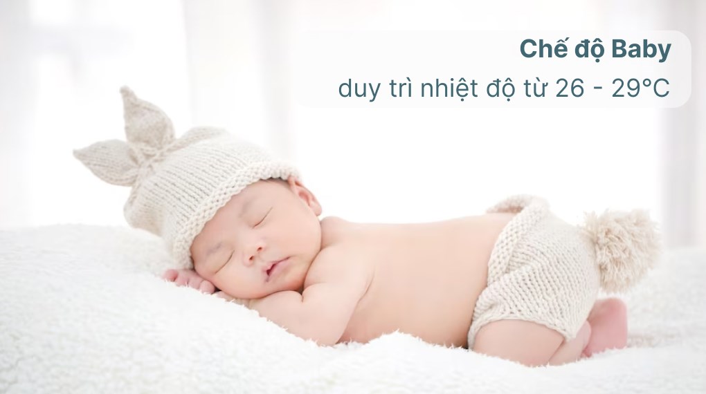 – Chế độ Baby khi được kích hoạt sẽ cho máy lạnh Casper Inverter này hoạt động êm ái và duy trì nhiệt độ phù hợp cho trẻ nhỏ, dao động từ 26 – 29°C.