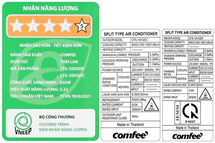 – Máy lạnh Comfee 1 HP hoạt động với công suất 9.000 BTU phù hợp cho không gian phòng có diện tích dưới 15m².