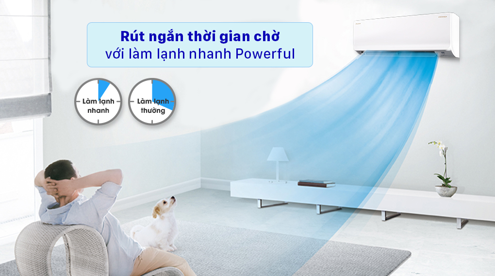 Chỉ với một phím bấm Powerful trên máy lạnh Daikin được kích hoạt, người dùng sẽ có được cảm giác mát lạnh, sảng khoái tức thì nhờ chức năng này cho phép máy hoạt động với công suất cực đại ngay sau khi kích hoạt.