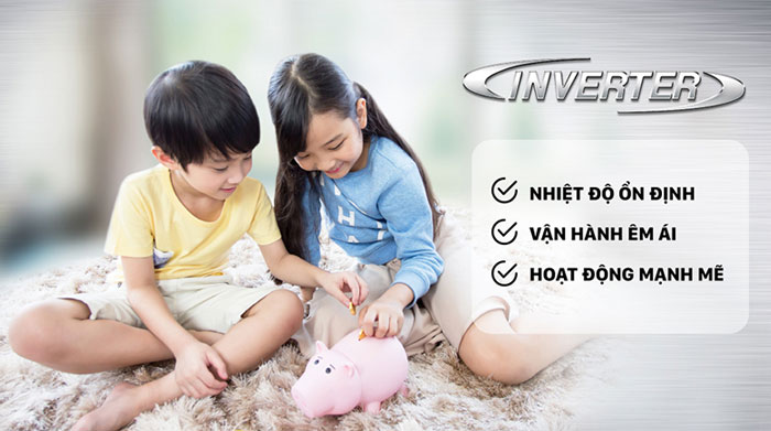 Sản phẩm còn được ứng dụng công nghệ Inverter hiện đại vừa giúp hỗ trợ sưởi ấm/làm mát nhanh, hiệu quả đồng thời cho khả năng tiết kiệm điện năng tối ưu, giúp giảm thiểu chi phí điện năng hằng tháng cho các gia đình.
