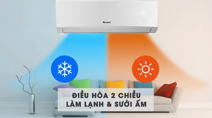 Chiếc điều hòa Gree này không chỉ có chức năng làm mát mà còn có khả năng sưởi ấm sẽ giúp người dùng tận dụng thiết bị sử dụng quanh năm.