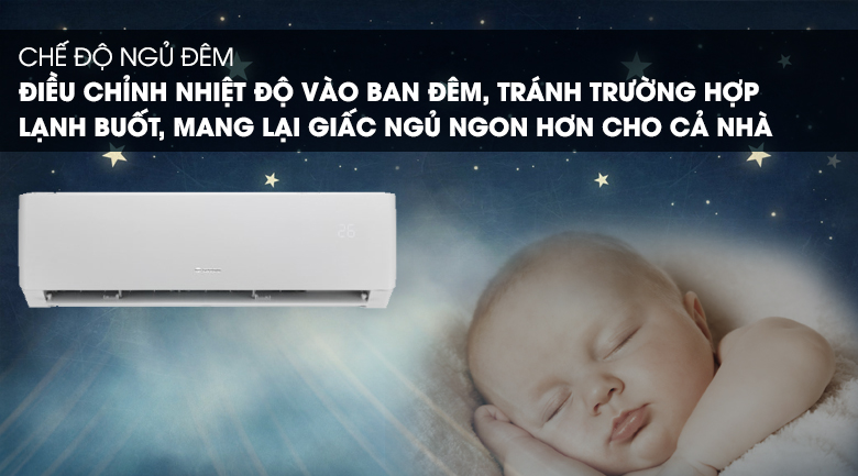 Nhờ có chế độ này mà các thành viên trong gia đình ngủ ngon hơn, hạn chế tình trạng phải thức giấc lúc nữa đêm vì nhiệt độ phòng hạ thấp. Máy lạnh sẽ tự điều chỉnh công suất để phù hợp với nhiệt độ ngoài trời và thân nhiệt của người dùng.